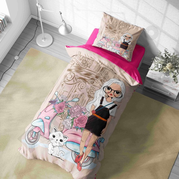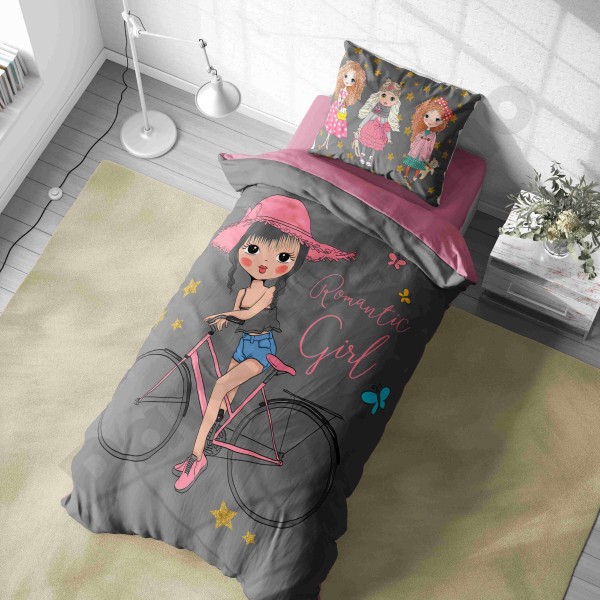 ست روتختی یکنفره طرح دخترانه دوچرخه