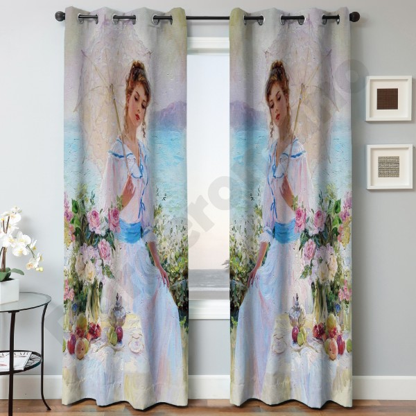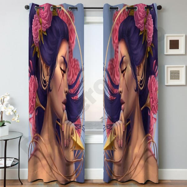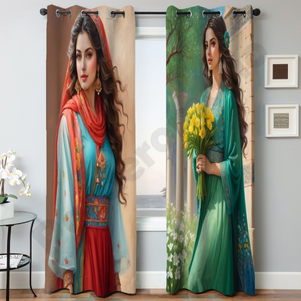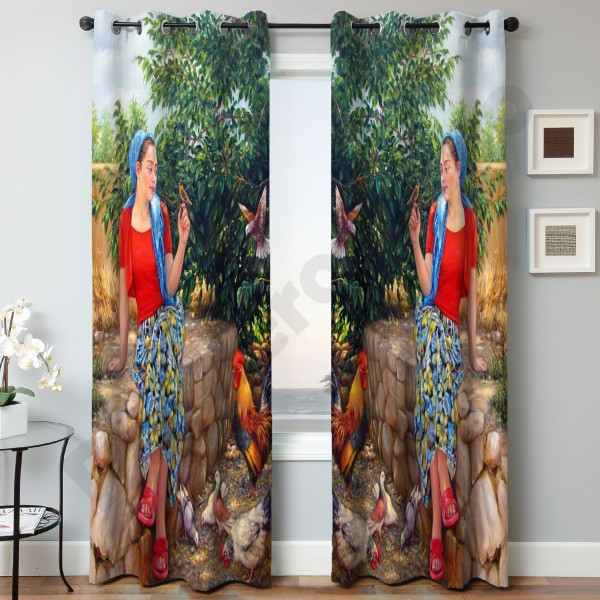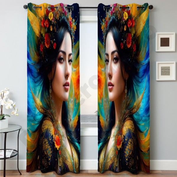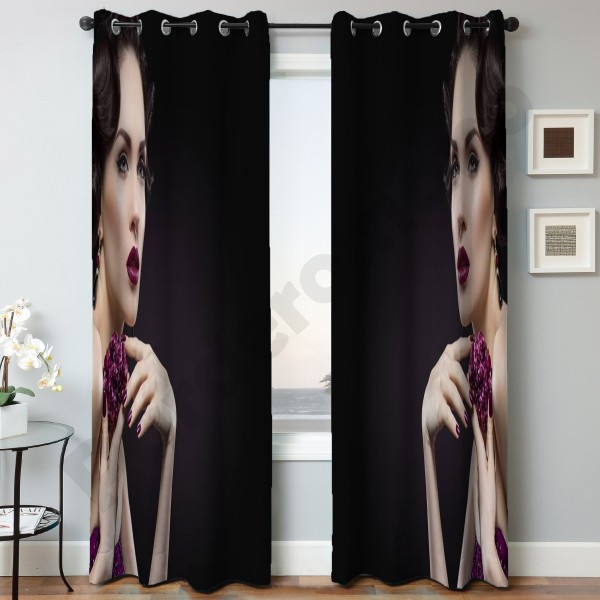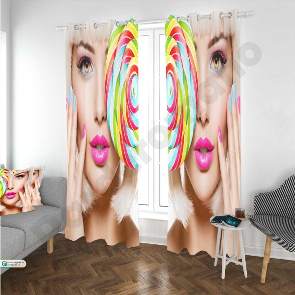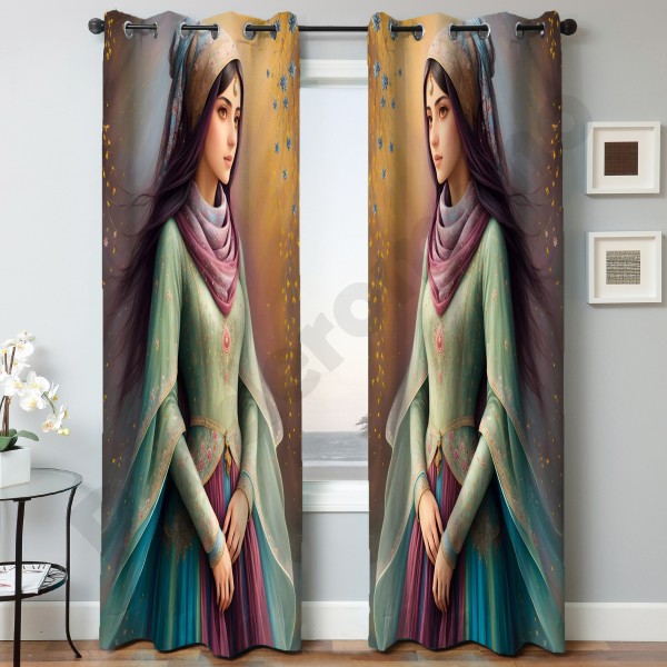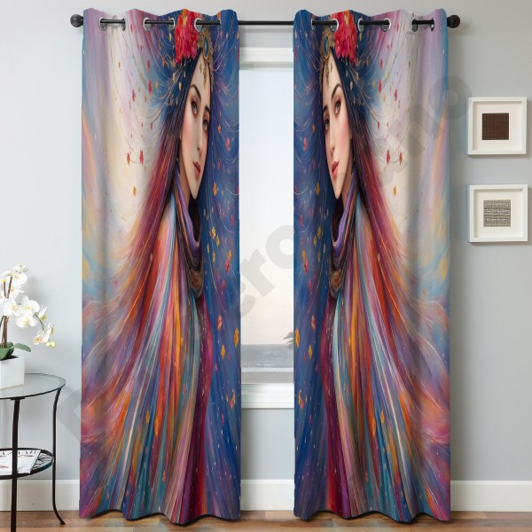 پنل آماده چاپی مخمل طرح دختر مو فرفری