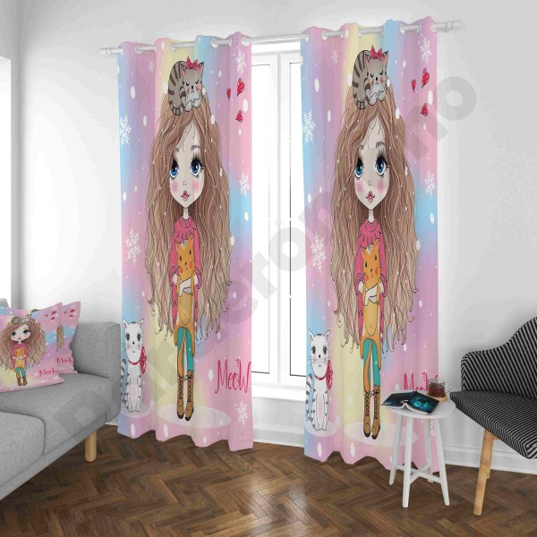 پنل آماده چاپی مخمل طرح دختر گربه ای